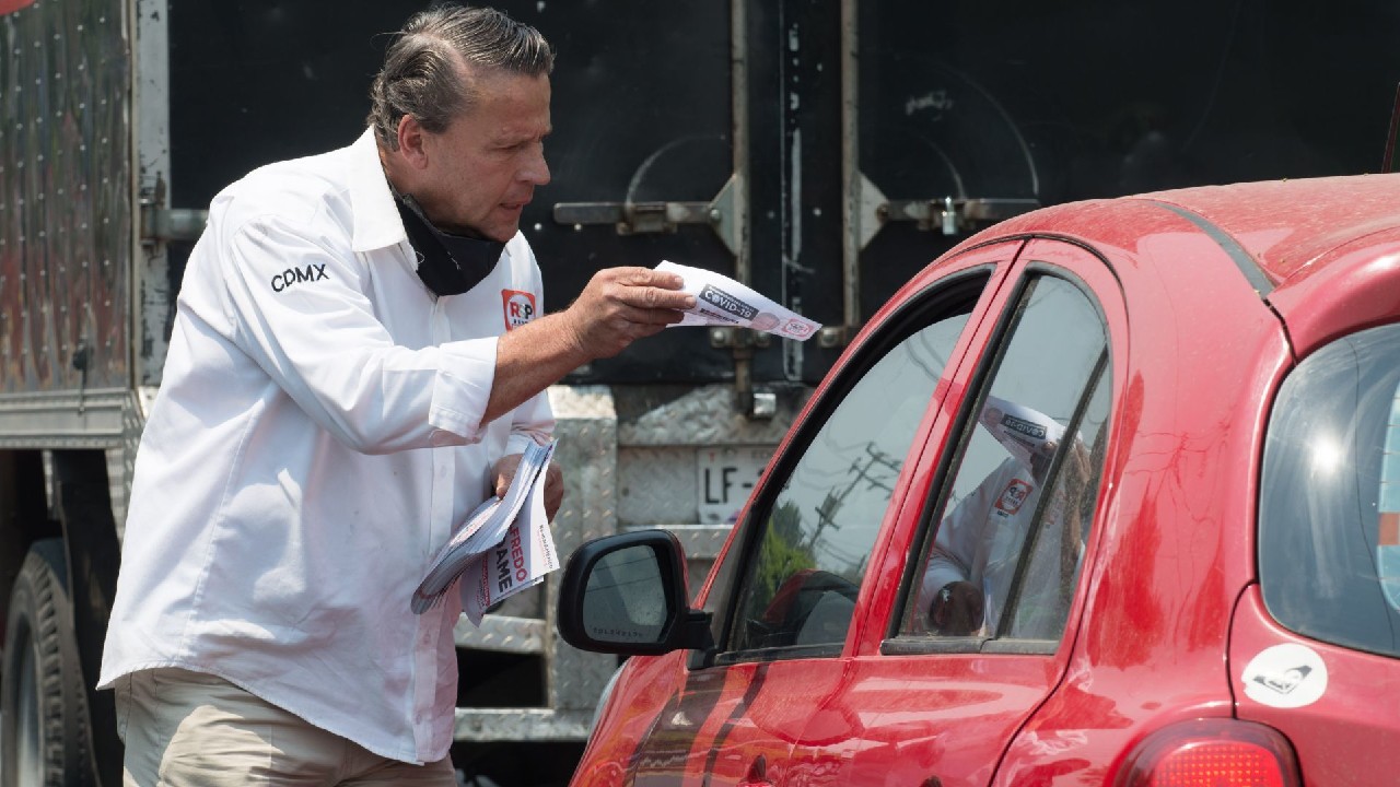 El candidato de Redes Sociales Progresistas (RSP) a diputado federal por Tlalpan, Alfredo Adame, inició su campaña electoral por el distrito 14 entre ‘mentadas de madre’, mientras repartía propaganda a las afueras de Six Flags.