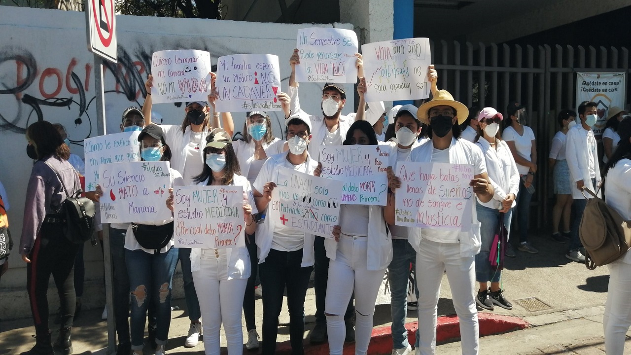 Estudiantes de medicina, miembros de colectivas feministas y familiares de Mariana de Lourdes Sánchez Dávalos, de 24 años de edad, hallada sin vida el pasado jueves por la mañana en la comunidad Palestina, del municipio de Ocosingo, marcharon en Tapachula, San Cristóbal y Tuxtla, para exigir justicia y castigo para los responsables.