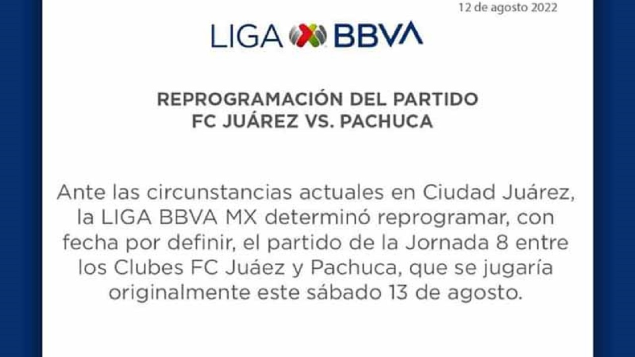 Liga MX cancela partido en Juárez por violencia