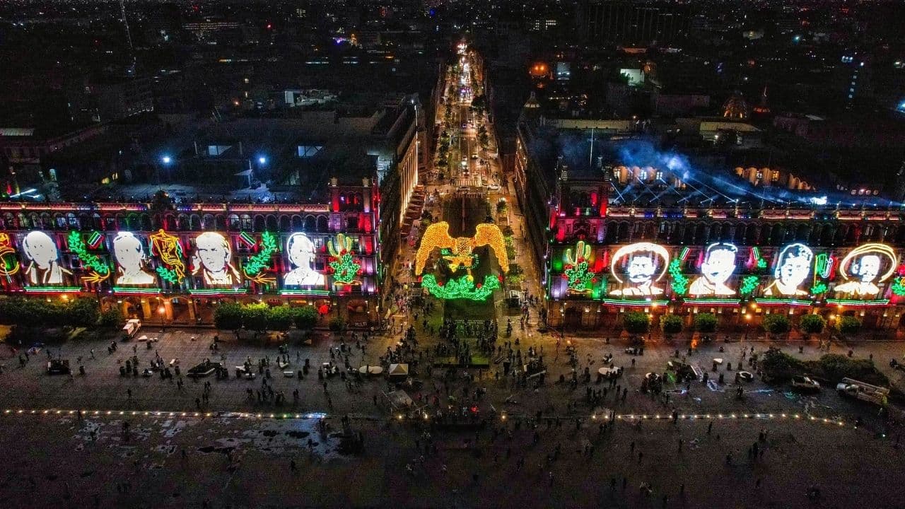 Se ilumina el Zócalo para las Fiestas Patrias