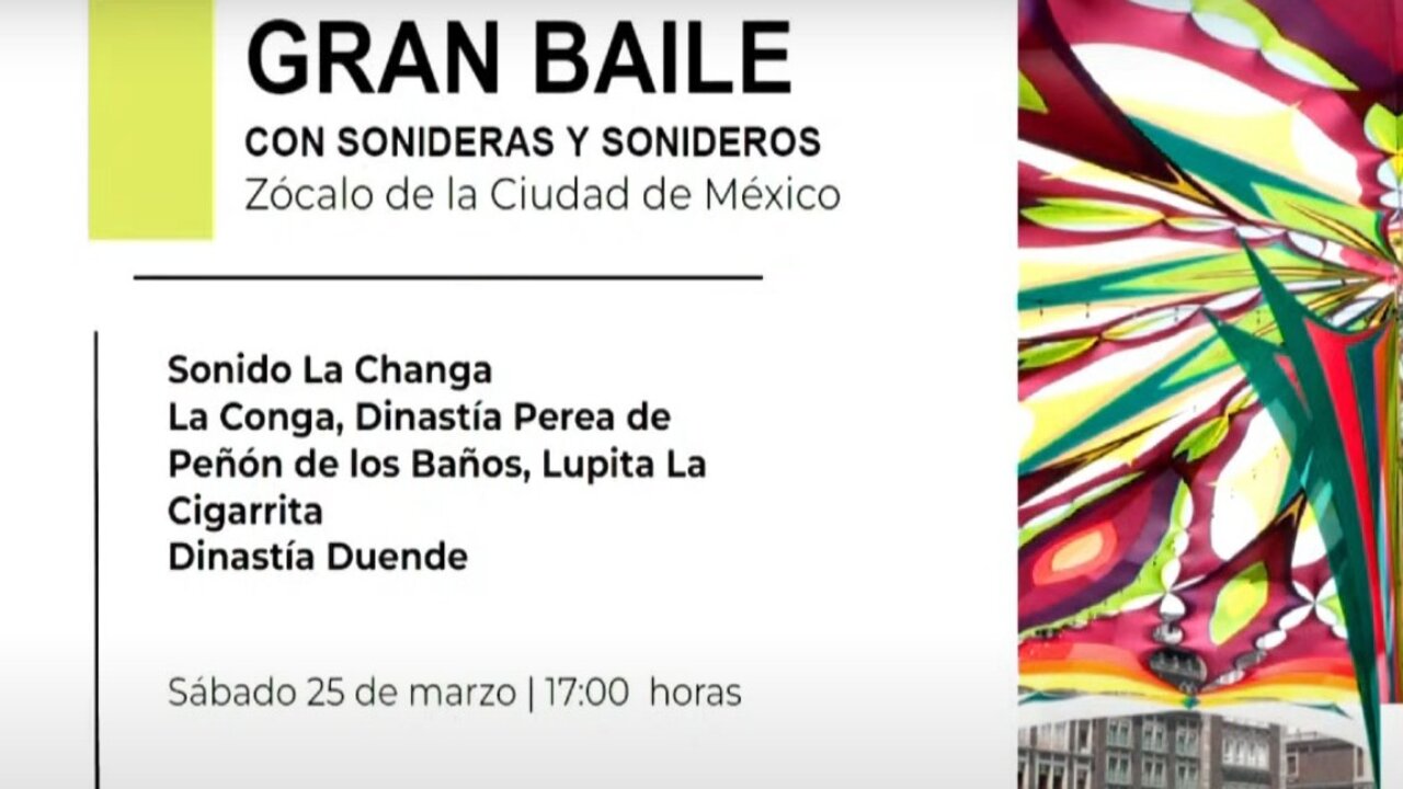 La Secretaría de Cultura informó que sonido La Changa, Conga, Dinastía Perea y Lupita La Cigarrita formarán parte de este gran baile al que se espera asistan más de 100 mil personas.