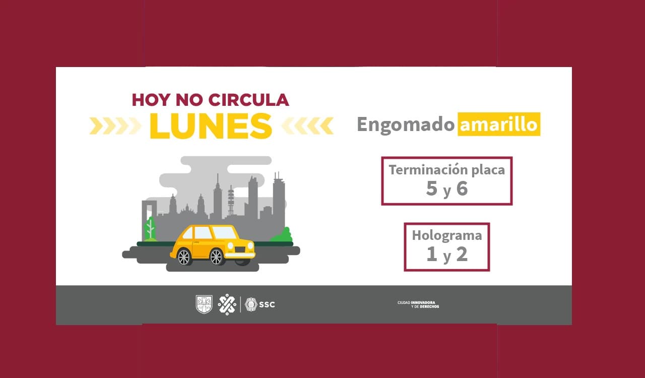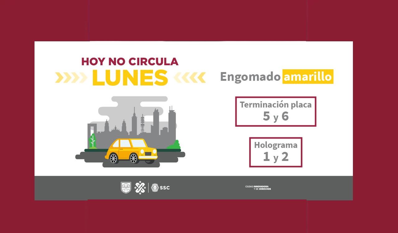 Hoy lunes no pueden transitar en el Valle de México los autos con engomado amarillo, terminación de placas 5 y 6, holograma 1 y 2