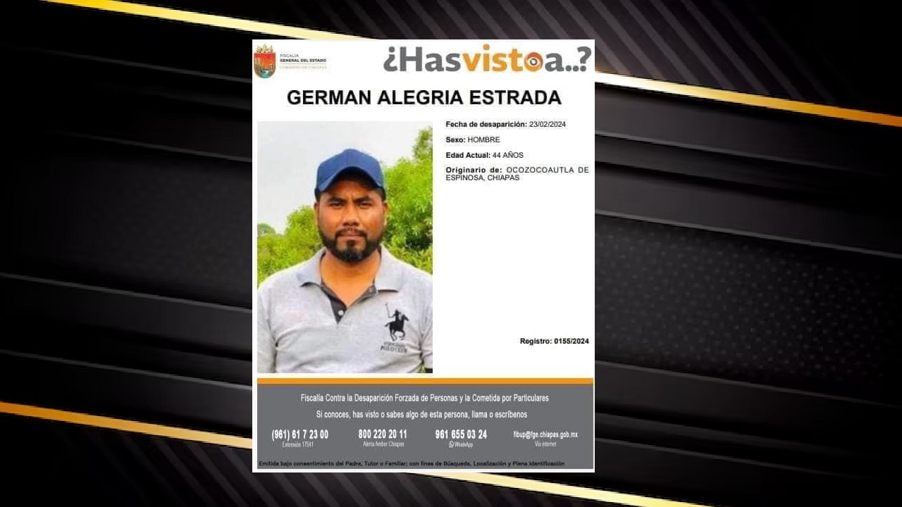 Autoridades de los tres niveles de gobierno mantienen un operativo de búsqueda para dar con Germán Alegría Estrada