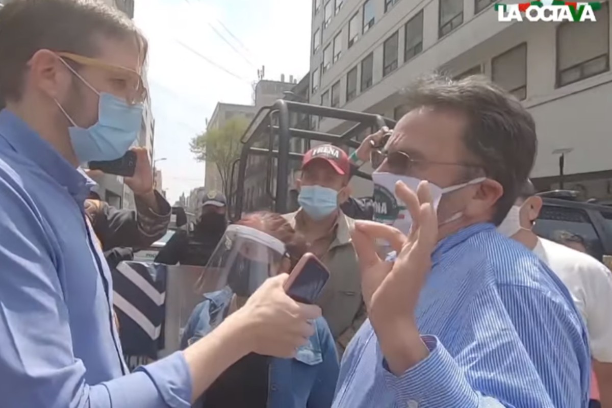 “Ya no vivimos en un Estado de Derecho, vivimos con un dictador que se está apropiando del Zócalo, se está apropiando de las calles”, dijo el sujeto que utilizaba un cubrebocas blanco con el logo de Frenaaa.